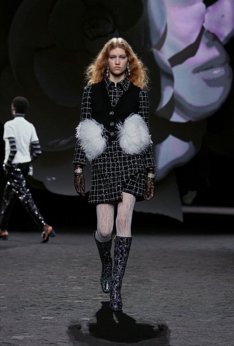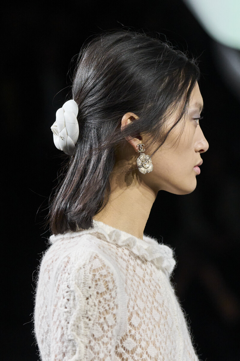 对Chanel历史再熟悉不过的维吉妮·维娅(Virginie Viard)认为山茶花对她而言是一种安心的熟悉感,于是将山茶花柔软又强韧的特质延伸至设计上,以冬日绽放的山茶花为概念,从整片印花图纹到口袋、外套、钮扣处的点缀,甚至是髮饰、手套、鞋履、包包上的装饰细节,都可以看见山茶花的优美姿态。