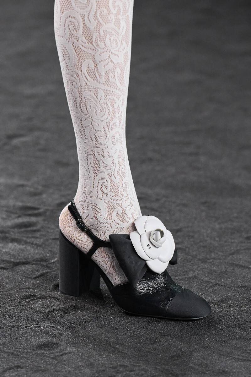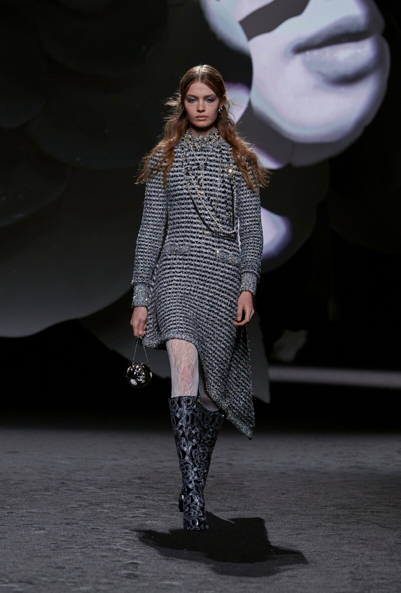 在剪裁与轮廓上,维吉妮·维娅(Virginie Viard)大量运用不对称设计来展现流动感,紧扣巴黎女人独有的自由与自在气息,细看大衣的不对称结构、洋装的开衩设计、百慕达短裤套装正面的斜裁层次、荷叶边装饰、洋装后背缕空的细节、珠绣与亮片绣饰,与交织着华丽纱线的针织作品,服装在model行进之间所展现的律动,实在优美,而由黑白双色及各式柔粉色系组成的色调,则符合Chanel既有的简约个性与优雅格调。