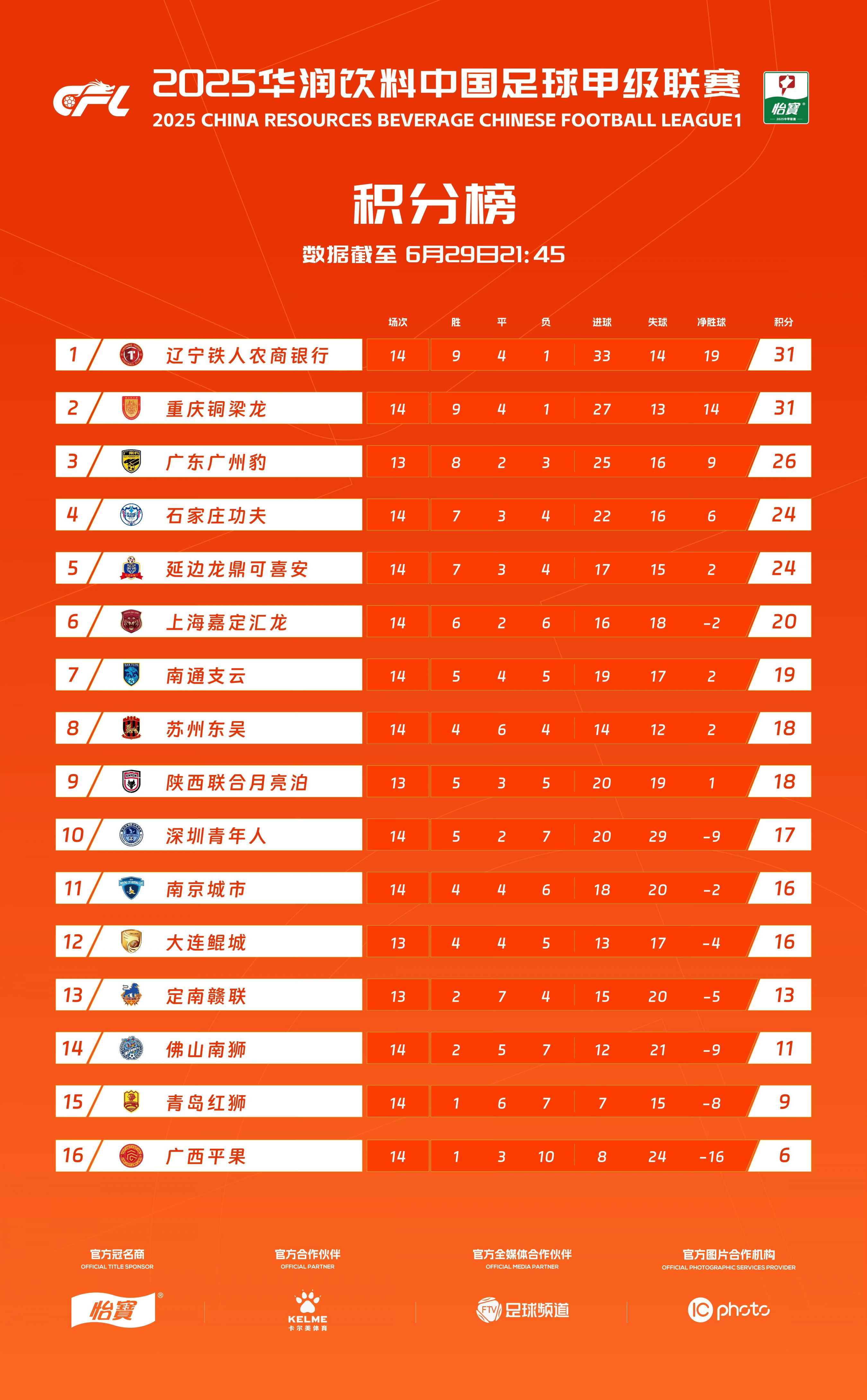 | 排名 | 球队名称 | 胜 | 平 | 负 | 进球 | 失球 | 积分 | | ---- | -------- | -- | -- | -- | ---- | ---- | ---- | | 1 | 大连鲲城 | 15 | 4 | 2 | 42 | 18 | 49 | | 2 | 北京国安 | 14 | 5 | 3 | 40 | 20 | 47 | | 3 | 上海海港 | 13 | 6 | 3 | 38 | 21 | 45 | | 4 | 广州队 | 12 | 7 | 3 | 36 | 22 | 43 | | 5 | 深圳队 | 11 | 7 | 4 | 34 | 25 | 40 | | 6 | 天津津门虎 | 10 | 8 | 4 | 32 | 26 | 38 | | 7 | 浙江队 | 9 | 9 | 4 | 31 | 24 | 36 | | 8 | 河北队 | 8 | 10 | 4举报 -