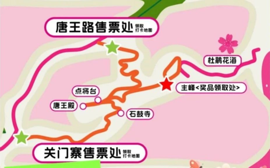 打卡点位:点将台、唐王殿、石鼓寺、主峰平台(奖励兑换)