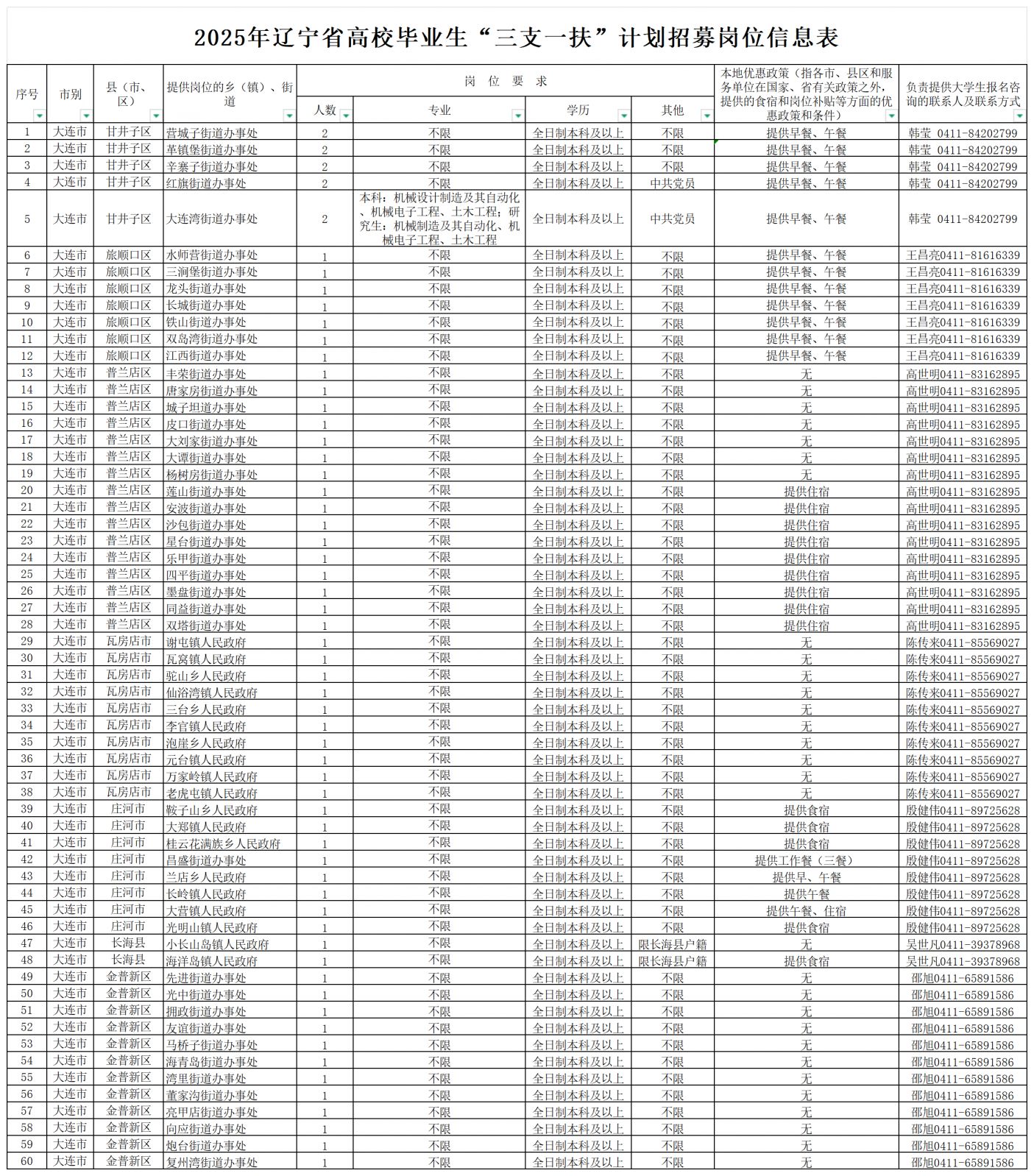 文件版下载:大连市三支一扶岗位表(点击下载)